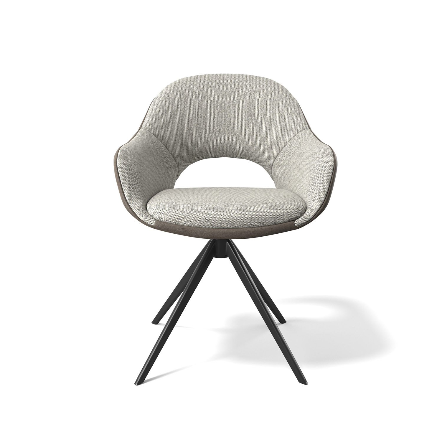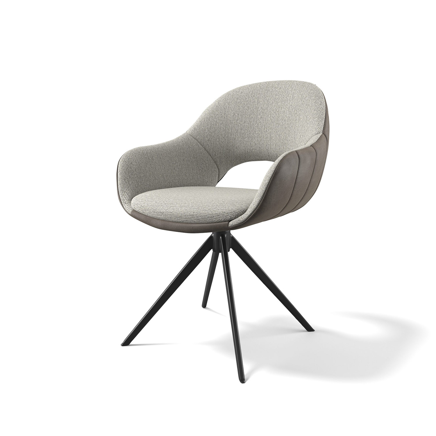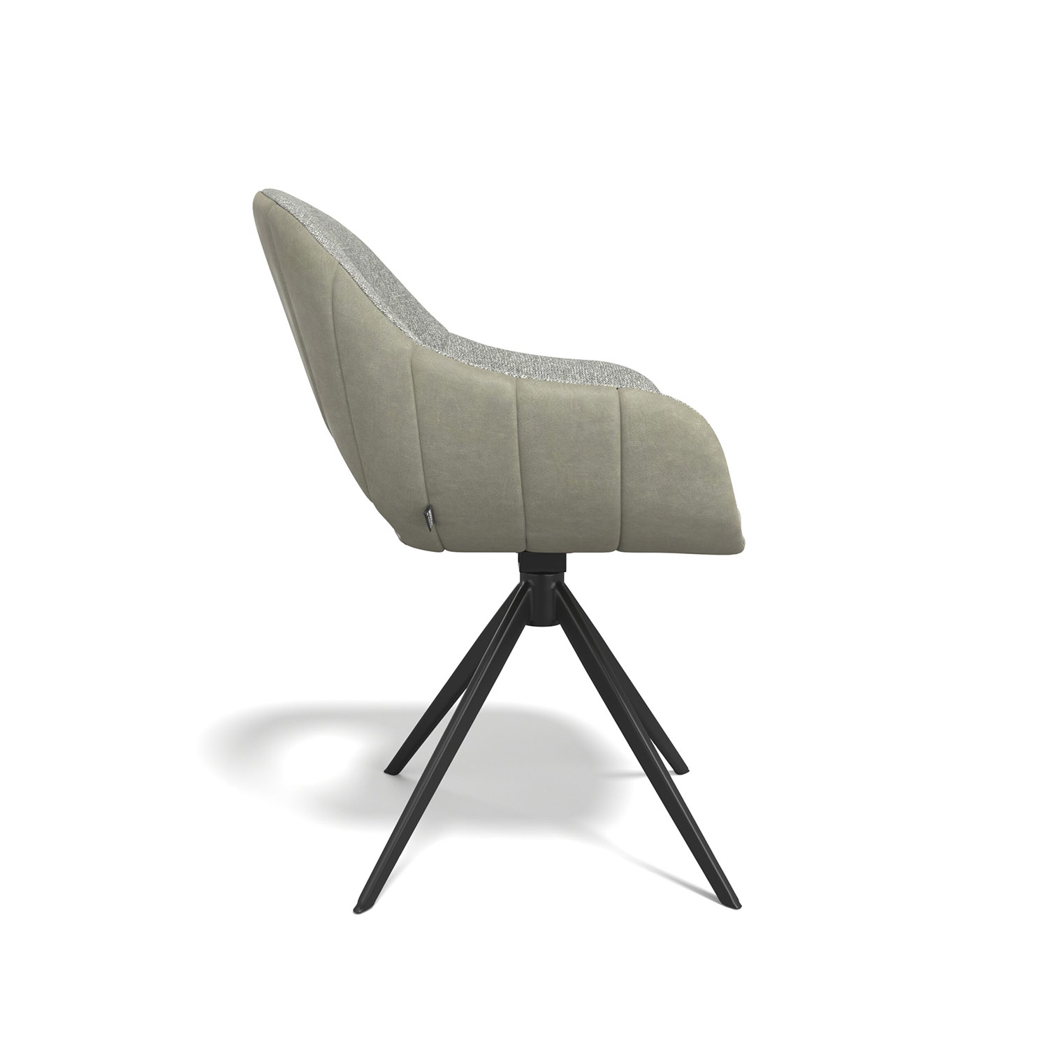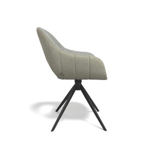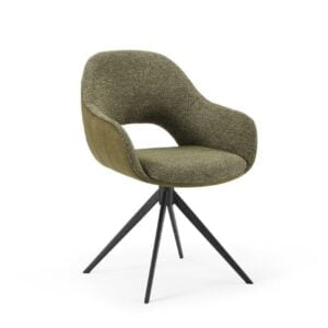 Trendiger, drehbarer Esszimmerstuhl mit Armlehne. Erhältlich in Duo-Polsterung in Moss, Anthrazit und cremeweiß.