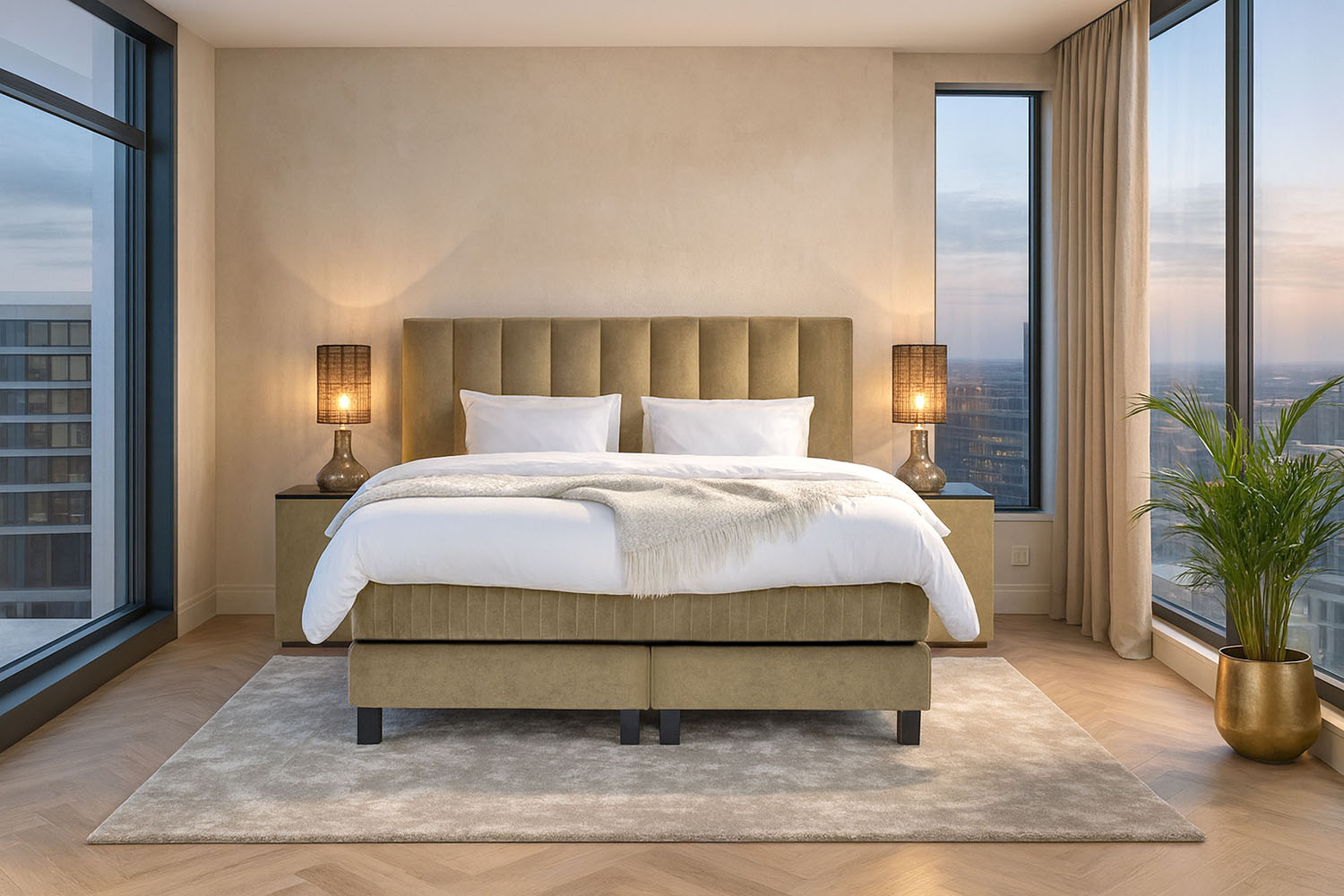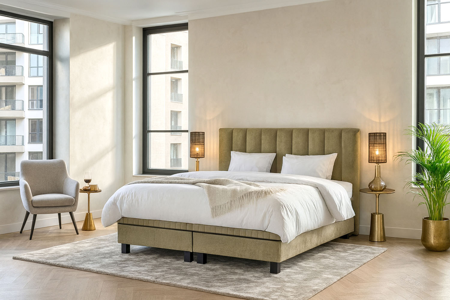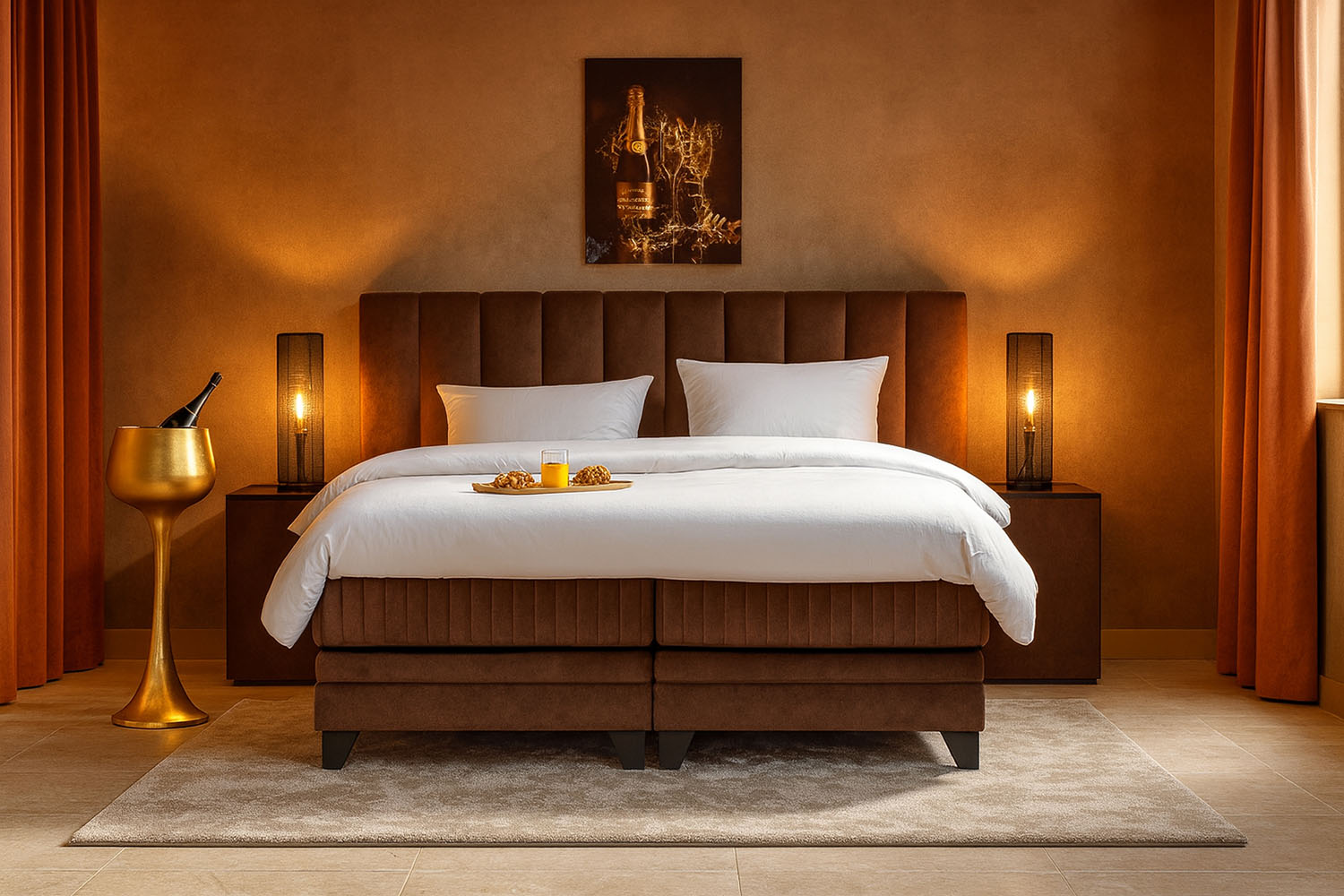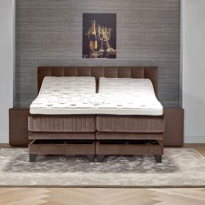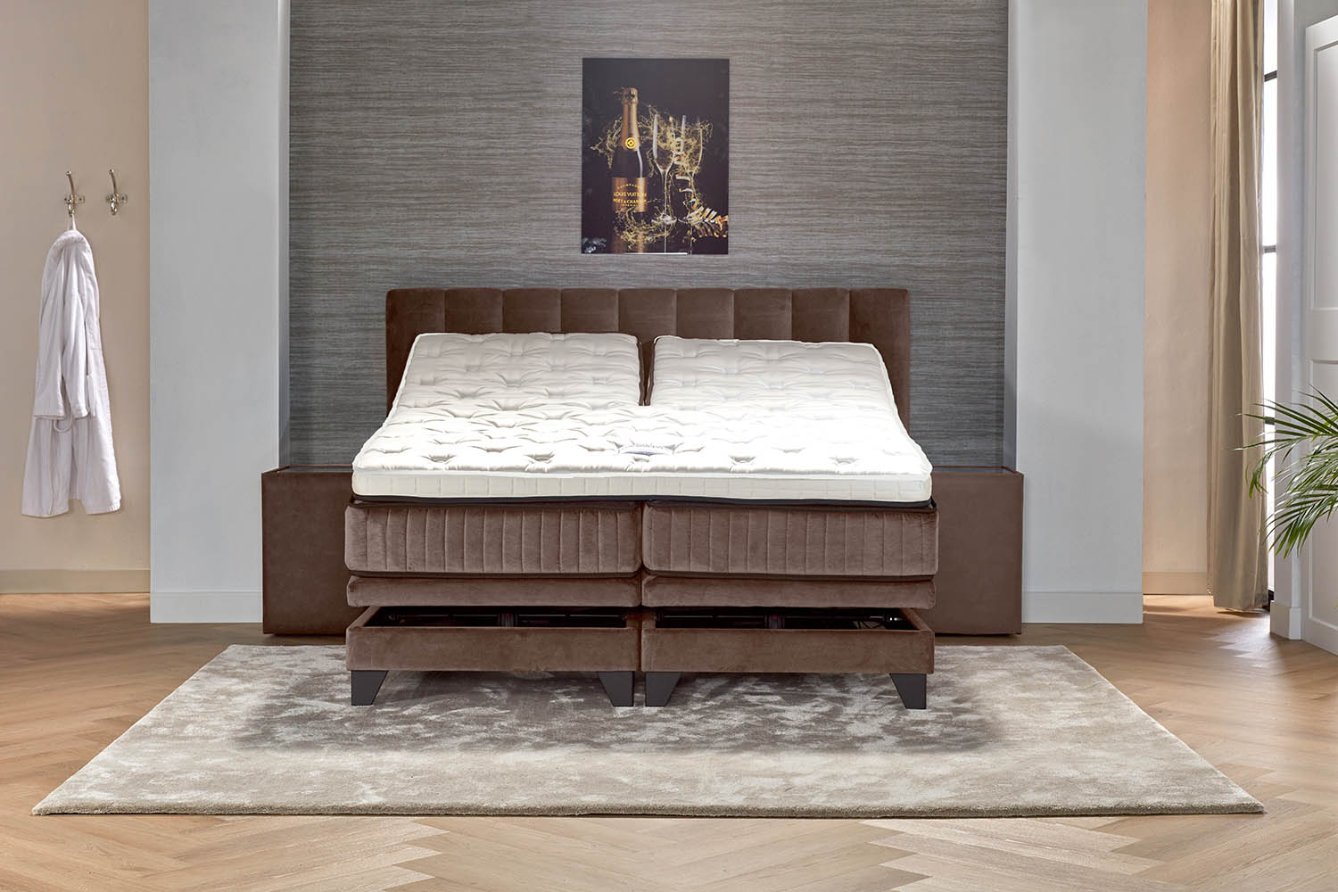 De Chandon geeft de gelegenheid om uzelf terug te trekken in uw eigen ’bubbel’. Deze boxspring kan geheel naar eigen smaak worden samengesteld en is ook nog eens uit voorraad leverbaar. Maak een keuze uit een van de beschikbare maten en kleuren, zoals het nieuwe Coffee en Milk Coffee en maak het compleet met bijpassende accessoires.