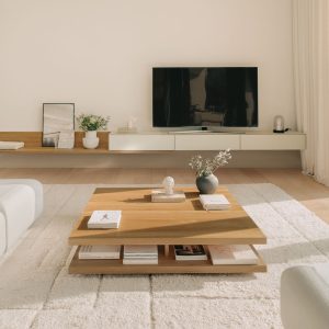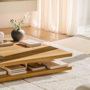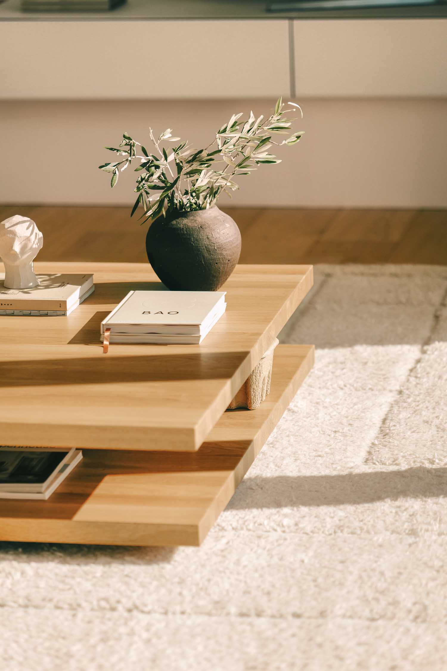 De schijnbare eenvoud van de c3 salontafel is gebaseerd op een unieke constructie, met uitzonderlijk vakmanschap. Het houten kruis middenin verbindt op haast onzichtbare wijze de twee houten platen en wekt de indruk dat ze zweven – ondanks hun volume. Echter, dankzij het verfijnde ontwerp lijken de indrukwekkende materiaaldiktes bijna gewichtloos.