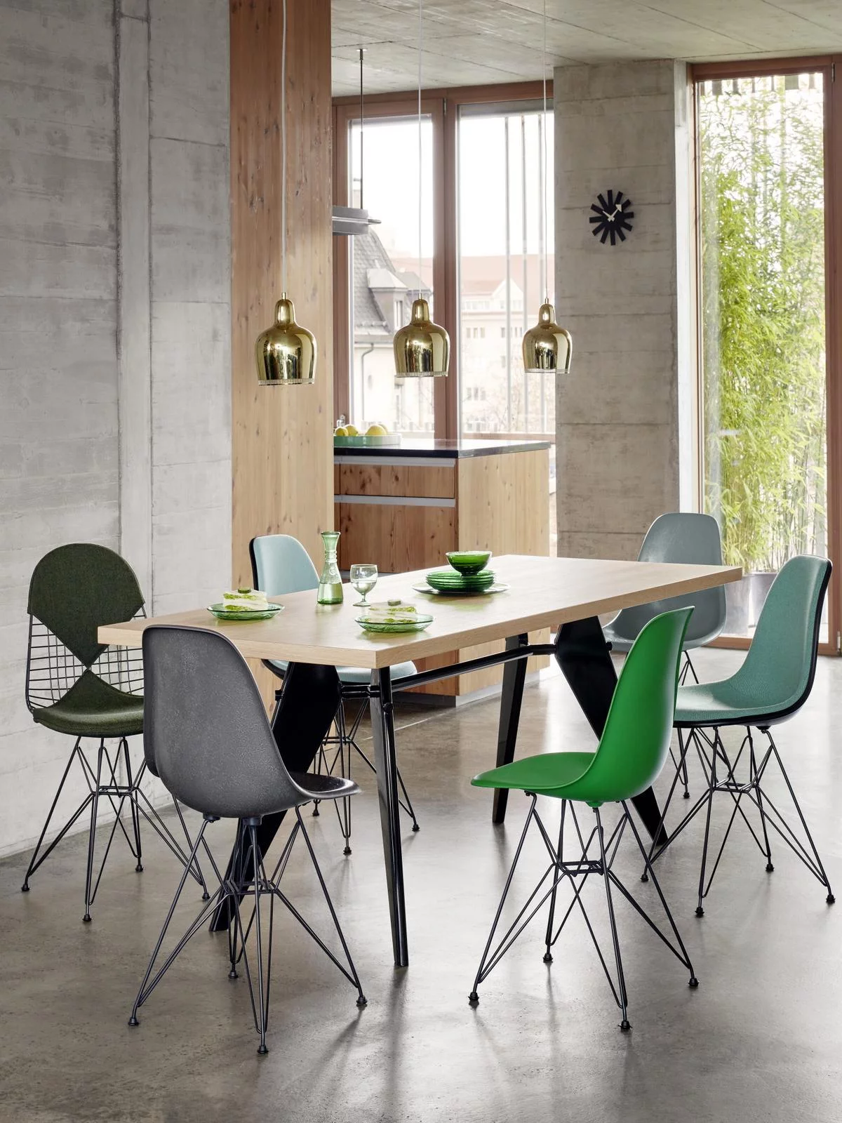 Het zogenaamde ‘Eiffeltorenonderstel’ van de stoel DSR (Dining Height Side Chair Rod Base), een complexe en elegante constructie van staaldraad, combineert lichte, elegante vormen met structurele sterkte. De organisch gevormde schaal van post-consumer gerecycled plastic is verkrijgbaar in verschillende kleuren en stofferingsopties, waardoor deze klassieker van Charles en Ray Eames aan de meest uiteenlopende individuele behoeften en voorkeuren aangepast kan worden.